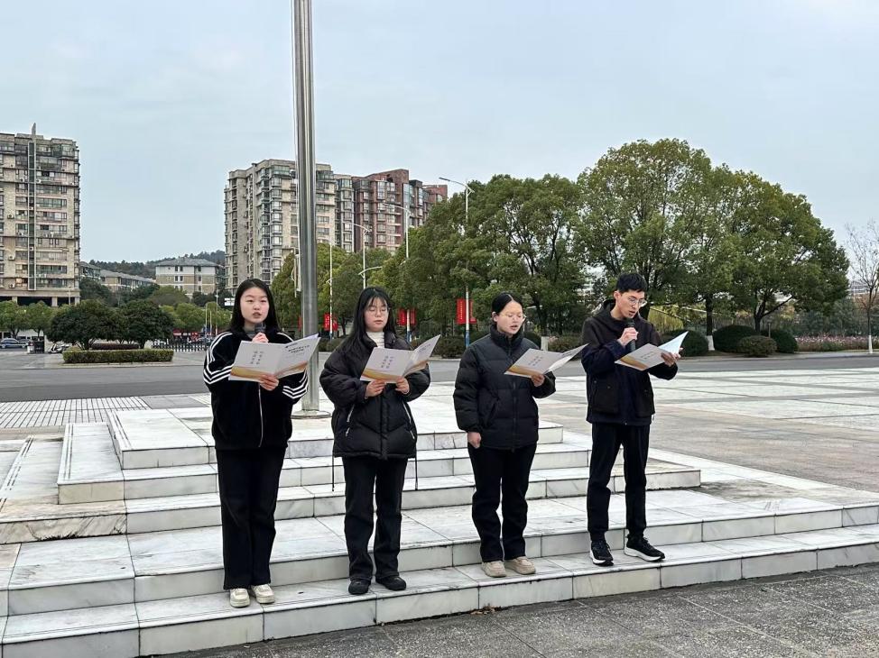 365上市公司本科生联合党支部党员代表吴明宇、黄天乐、刘珺培、王嘉玚带来主题为“铭记一二·九,青春谱新篇”的诗朗诵。他们以慷慨激昂的诗句带领同学们共同感受“一二·九”运动中中国共产党领导的青年学生的英勇与担当,激励当代青年奋发向上、砥砺前行。