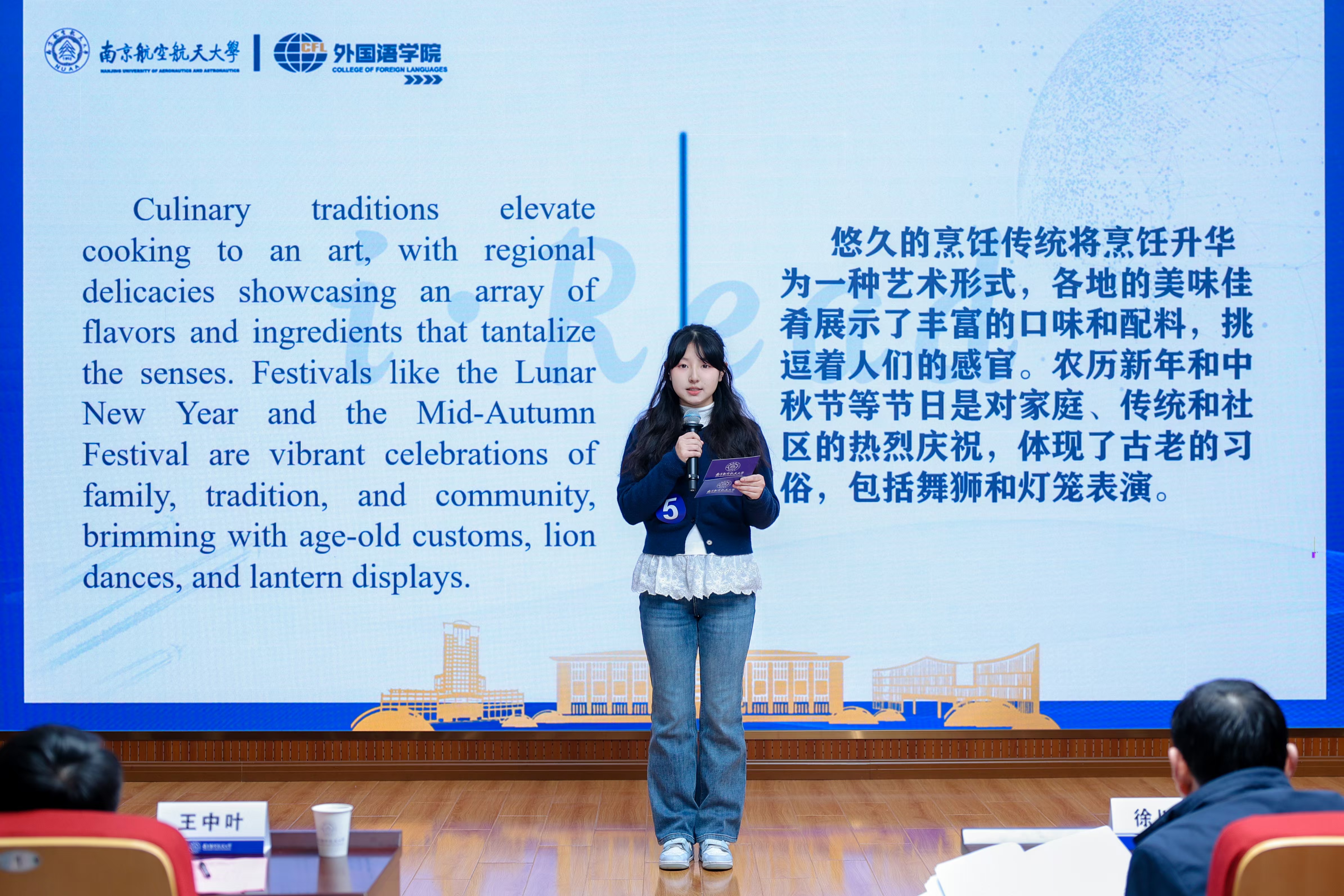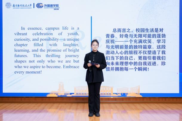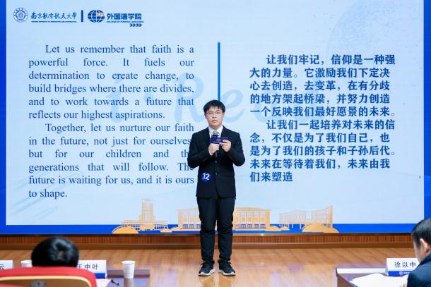 为保证公平公正,大赛采用了人工智能和教师评委协作双重评分的机制,在初赛阶段引入科大讯飞FIF口语训练系统,在AI判听的基础上,365上市公司组织英语专业教师对参赛作品进行专业复核。决赛第一轮朗诵环节,12强选手以标准的语音朗读了许多英语名篇。随后,6强选手产生并进入决赛第二轮——百秒图说南航环节。他们用流利的英语口语和准确的英语表达,向评委和观众们讲述图片背后的南航故事,传承南航校训校风精神。决赛过程中,一张张承载南航重大发展时刻的图片唤起嘉宾评委和同学们的共同回忆,选手们的高水平发挥也赢得了嘉宾评委和同学们的欢呼喝彩和热烈掌声。
