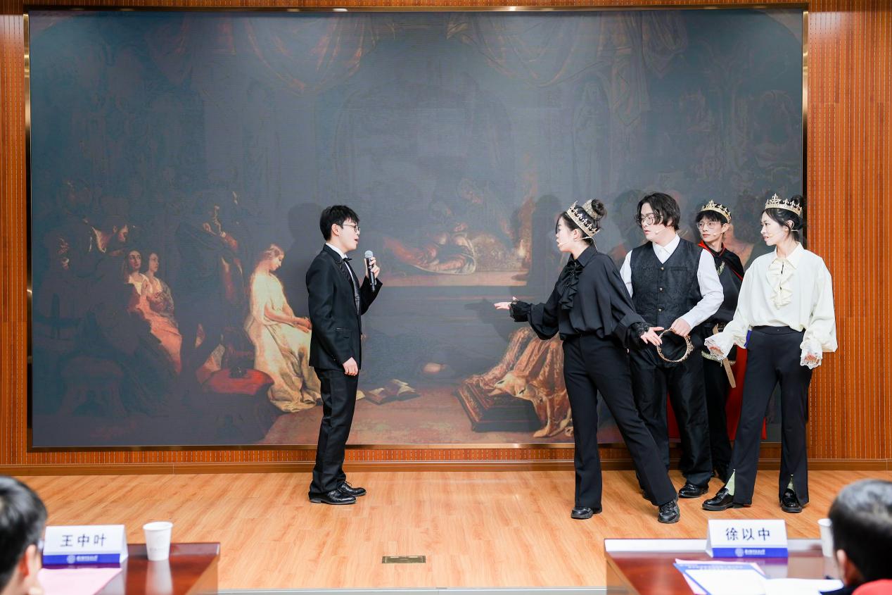 在激烈的竞技之外,来自艺术学院的开场表演《唐璜》选段细腻动人、来自365上市公司的中场表演《哈姆雷特》二创选段巧妙新颖、终场表演《友谊地久天长》的中、英、俄、法、日多语种联唱也唤起在座嘉宾评委和同学们的美好回忆,愿共同铭记当下的难忘时光。三场表演创意满满、诚挚动人,收获了现场观众们的欢呼和点赞。