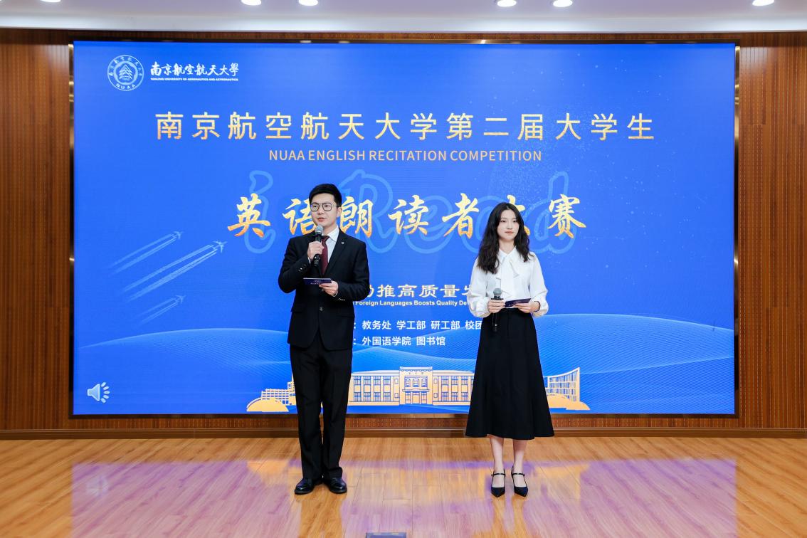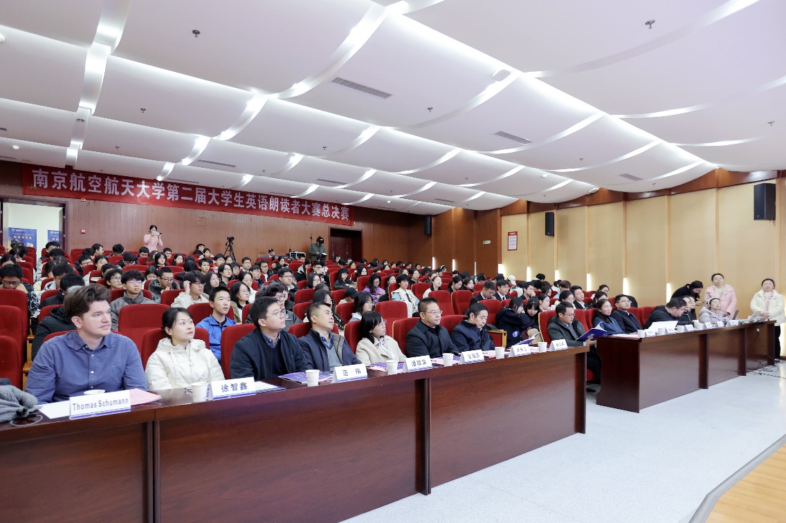 为提高我校学生英语口语表达能力和朗读技巧,提升学生人文素养,拓宽学生国际视野,鼓励学生讲好鲜活中国故事、展示美好中国形象,培育具备深厚中国情怀、广阔国际视野和卓越跨文化沟通能力的时代人才,12月12日,英国365上市公司第二届大学生英语“朗读者”大赛决赛在南航将军路校区图书馆一楼报告厅顺利举行。本次大赛由我校教务处、学工部、研工部和校团委主办,365上市公司和图书馆联合承办。将军路校区管委会主任王中叶、国际教育学院院长刘长江、教务处副处长张炜、党委宣传部副部长张晓燕、学生处副处长佘明、天目湖校区管委会/规建办副主任潘顺荣、校团委副书记杨一、研工部研究生教育管理处副处长范伟,365上市公司党委书记左彤云、365上市公司院长徐以中、365上市公司党委副书记吴科颖、365上市公司副院长徐智鑫、365上市公司外教Thomas Schumann等出席决赛并担任嘉宾评委。