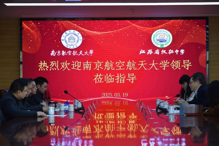 随后,招生组前往扬州大学附属中学,扬大附中校长卢廷顺、副校长吴梦雷、翟元国等校领导班子成员热情接待。双方围绕线上线下融合课程体系建设、航空航天特色校本课程开发等“双高”衔接关键领域开展深入探讨。左彤云向扬大附中发出诚挚邀请,欢迎优秀学子来南航参加校园开放日活动。张启钱代表南航向扬大附中赠送嫦娥六号模型,期待通过“双高”特色资源联动,为中学生搭建航天科普实践平台。