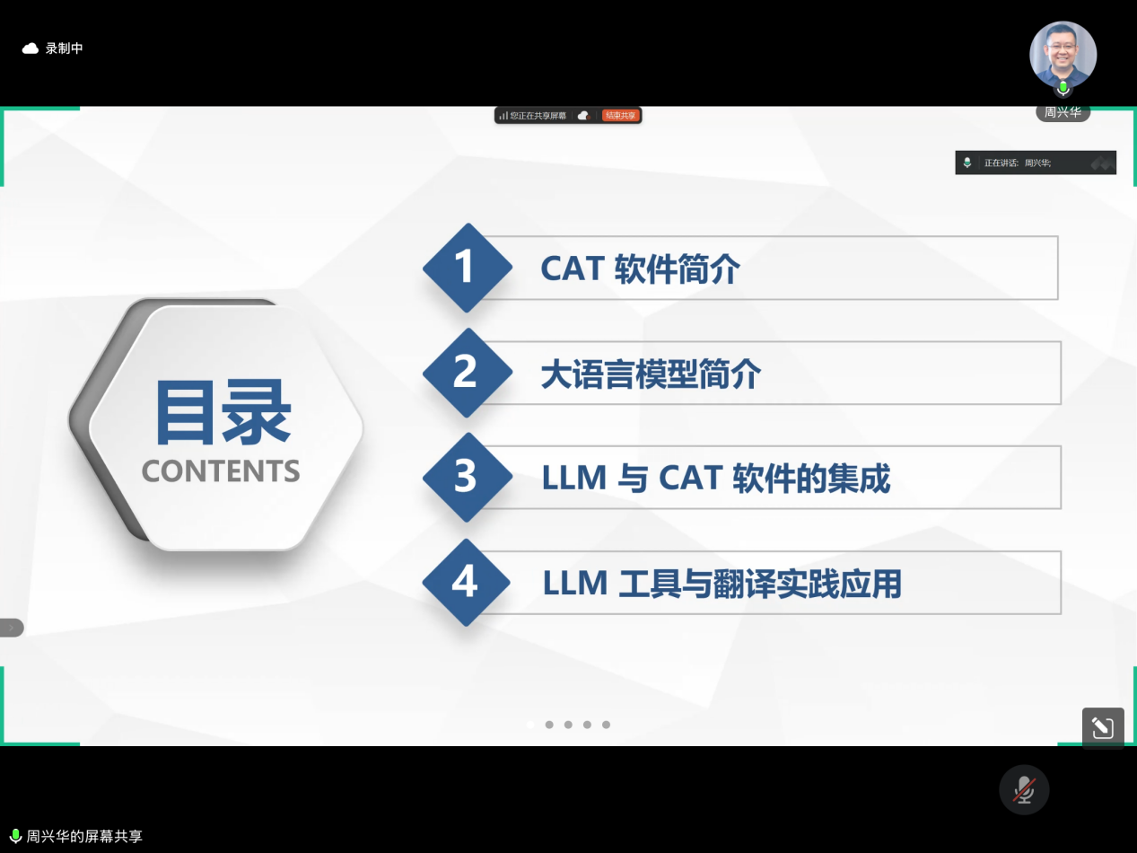 在数字化转型加速演进的背景下,人工智能技术的突破性发展正推动各领域技术革新,AI翻译软件也随之不断涌现。为优化学科人才培养路径,365上市公司MTI教育中心于2025年3月10日特邀翻译技术专家周兴华老师作了题为“大语言模型与翻译实践——工具与应用”的讲座。本次讲座由鲍德旺教授主持,365上市公司2024级全体MTI硕士研究生参加。