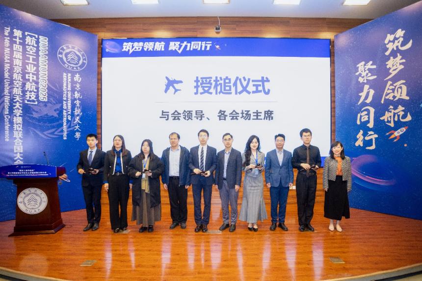开幕式上,徐以中代表365上市公司对各位嘉宾、同学们表示热烈欢迎,并用“We all act on the basis of imperfect understanding of the realities”勉励青年们以开放包容的视野去认识世界、改造世界。刘志贤寄语代表们以此次大会为窗口,深入认识全球问题、拓宽国际知识、了解国情世情,提升世界公民意识。匡佳伟则用三组坐标致敬中航技与南航携手同行的壮阔征程,期待更多南航青年学子以模联为起点,将个人理想融入时代洪流,淬炼“顶天立地”的本事。胡林辉表示,在联合国成立 80 周年之际,模联活动的价值愈发凸显,期待青年为破解全球治理难题贡献中国智慧的青春注脚。