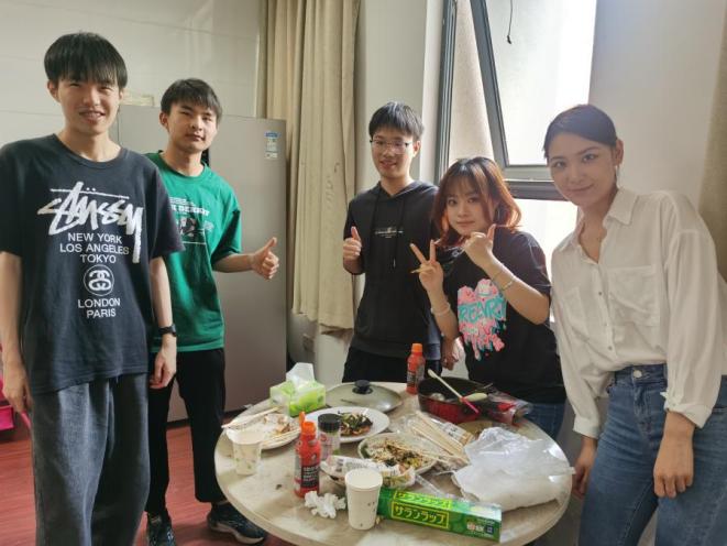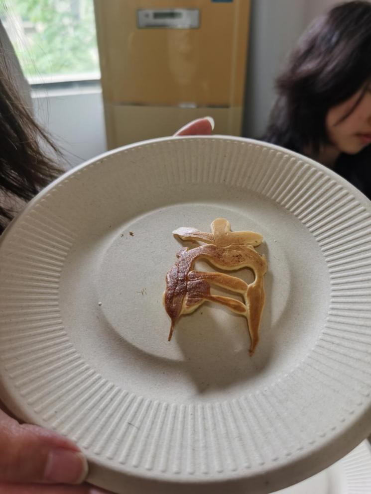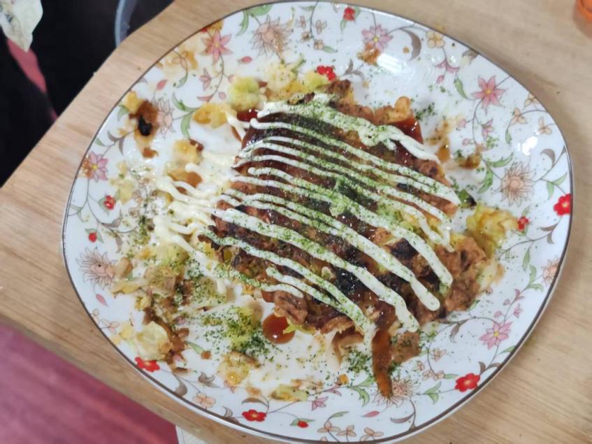 在大家的协作下,一张张色泽金黄、香气扑鼻的大阪烧被端上桌,松软香甜的松饼也接连出炉;同学们还制作了创意作品。日语系老师和学院其他系部老师也来到现场,与同学们围坐一堂,边品尝美食边交流学习和生活的趣事。大家在轻松欢快的氛围中加深了对日式饮食文化的理解,增进了彼此之间的情感联系。这顿亲手制作的午餐,不仅滋养了味蕾,也温暖了心灵。
