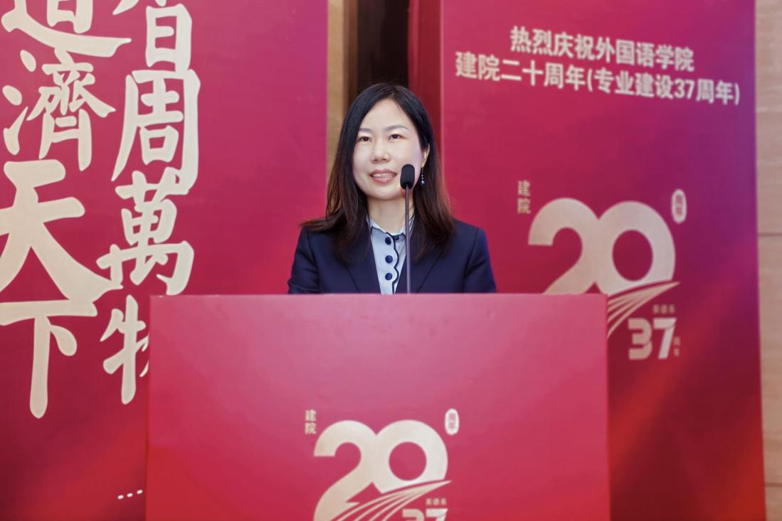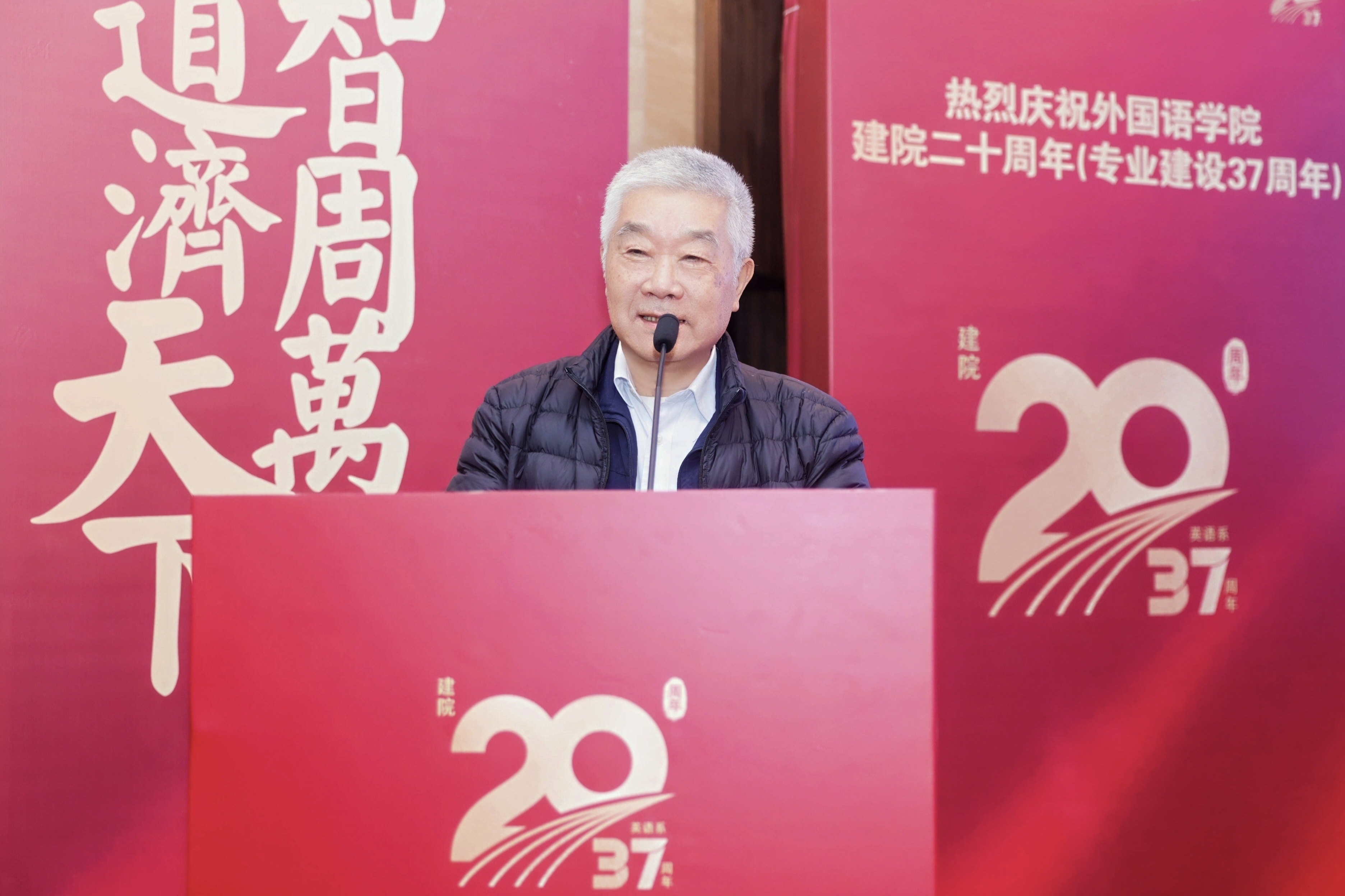 365上市公司老领导代表吴鼎民教授作为学院发展的贡献者和见证者,回顾了学院二十载筚路蓝缕、薪火相传的办学历程,向所有为学院发展倾注心血的师生、校友表达了深切敬意与感谢,并鼓励全院师生创造新的辉煌,为学校的发展与国家的战略需求贡献外语智慧与力量。