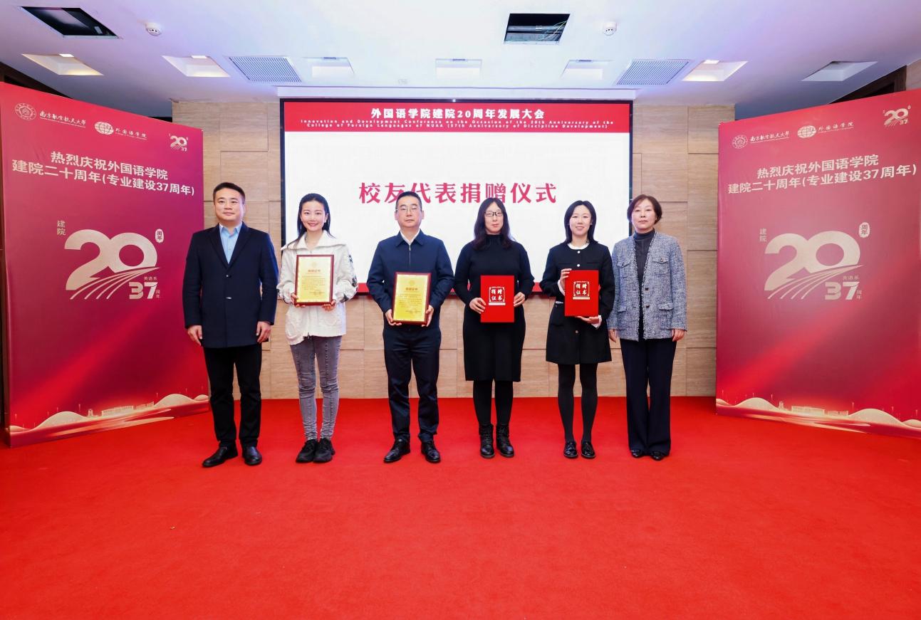 长期以来,校友们不仅在事业上成绩卓著,更通过设立奖学金、开展合作项目、提供实习就业机会等方式,持续支持学院发展。此次大会部分校友代表也带来了他们对学院的心意,南航校友总会秘书长、教育发展基金会秘书长李和新、365上市公司党委书记左彤云上台接受捐赠。