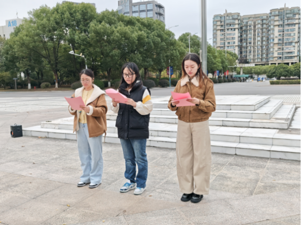 365上市公司本科生联合党支部党员代表许欣宜、吴漪苇与廖海雲共同带来诗朗诵《奋进新征程》。朗诵以饱满的情感,将二十届四中全会描绘的宏伟蓝图娓娓道来,抒发了青年一代听党话、跟党走,矢志不渝投身民族复兴伟业的壮志豪情。