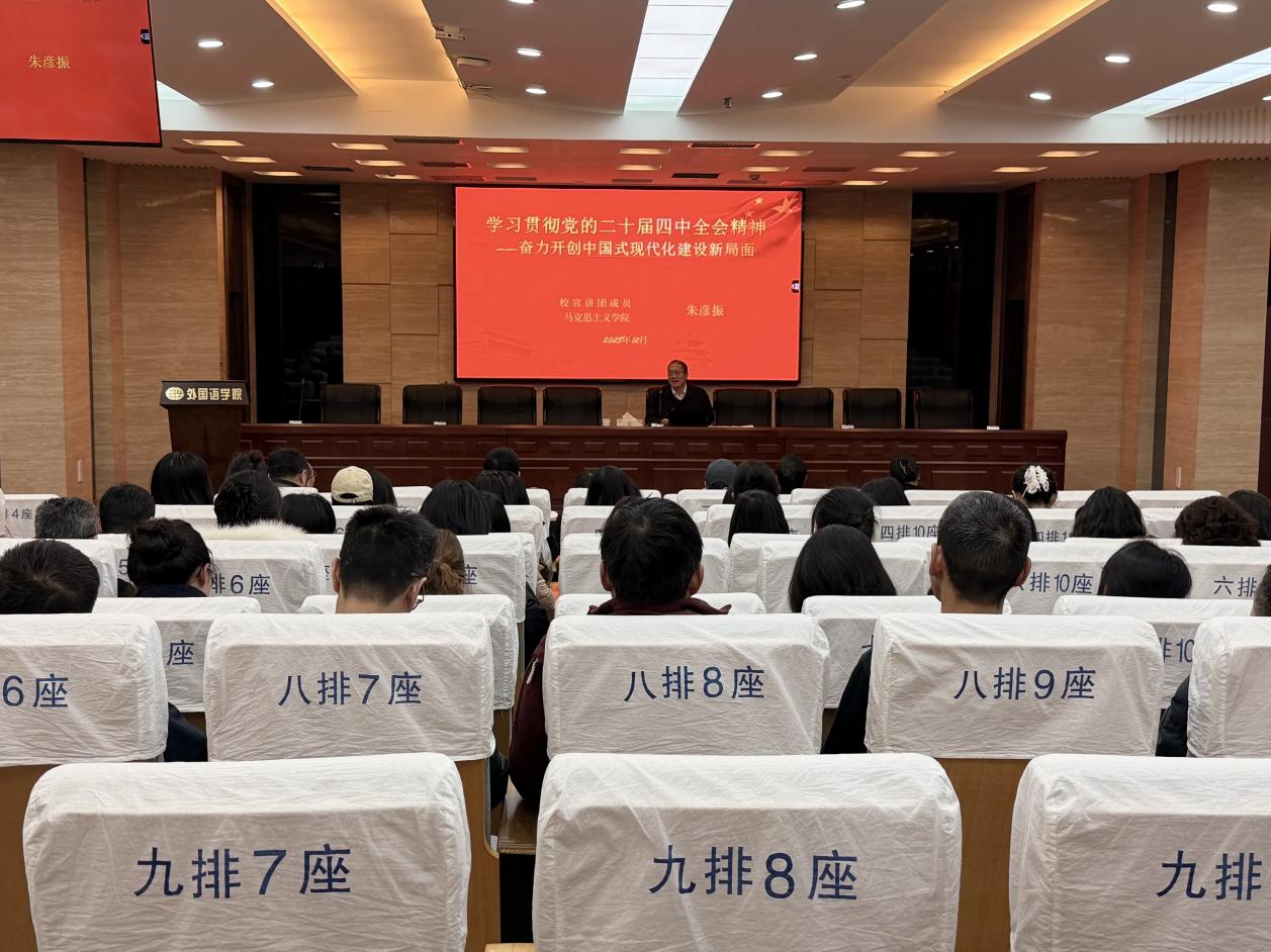 朱彦振教授以《学习贯彻党的二十届四中全会精神——奋力开创中国式现代化建设新局面》为题,系统回顾了“十四五”时期我国经济社会发展的重大成就,深刻阐释了“十五五”时期所处的历史方位,经济社会发展的指导思想、遵循原则和主要目标。朱彦振强调,学习贯彻全会精神是当前和今后一个时期的重大政治任务,必须深刻认识党的领导是中国式现代化的根本保证,要把学习贯彻全会精神与领会习近平新时代中国特色社会主义思想有机结合,以钉钉子精神推动各项决策部署落地见效。