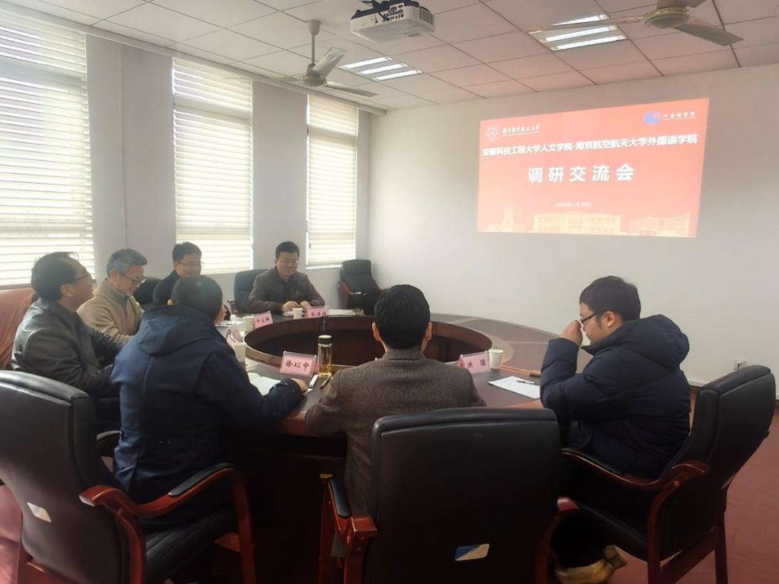 1月10日,安徽科技学院人文学院院长李晓东一行来我院调研交流,我院院长徐以中、日语系主任窦硕华出席并参与研讨。